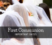 Preparing for the Sacrament of Reconciliation and First Holy Communion is a beautiful time in your child’s life. The preparation consists of two years of formation; beginning in first grade. Throughout the second year in addition to classes every other week there are 2 retreats, Rites at Mass and other events to help prepare your child for the gift of the Eucharist. Please put on your calendar the First Communion dates throughout the year. 1st Communion Dates